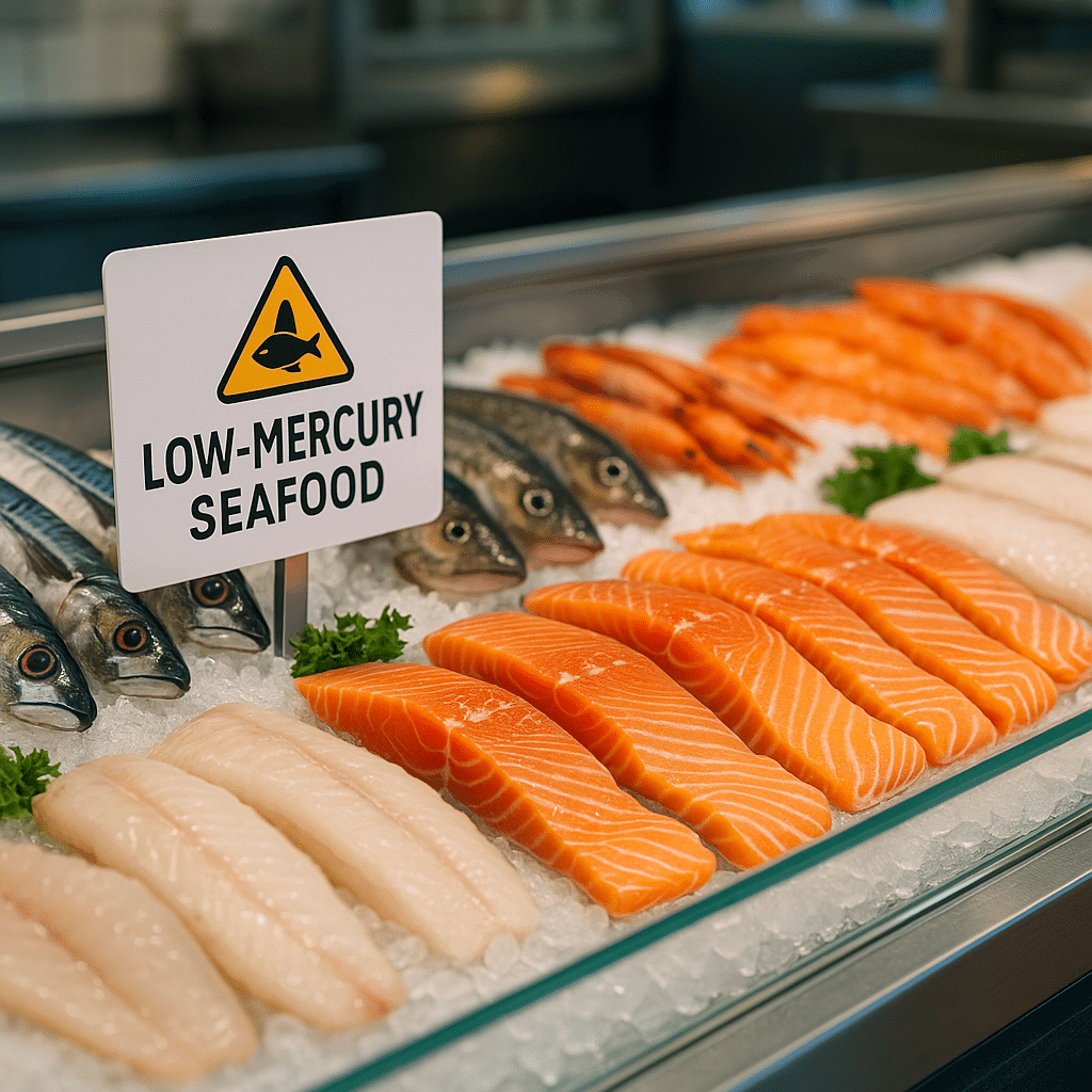 Clinical guidance emphasizes choosing low-mercury fish to reduce dietary methylmercury exposure